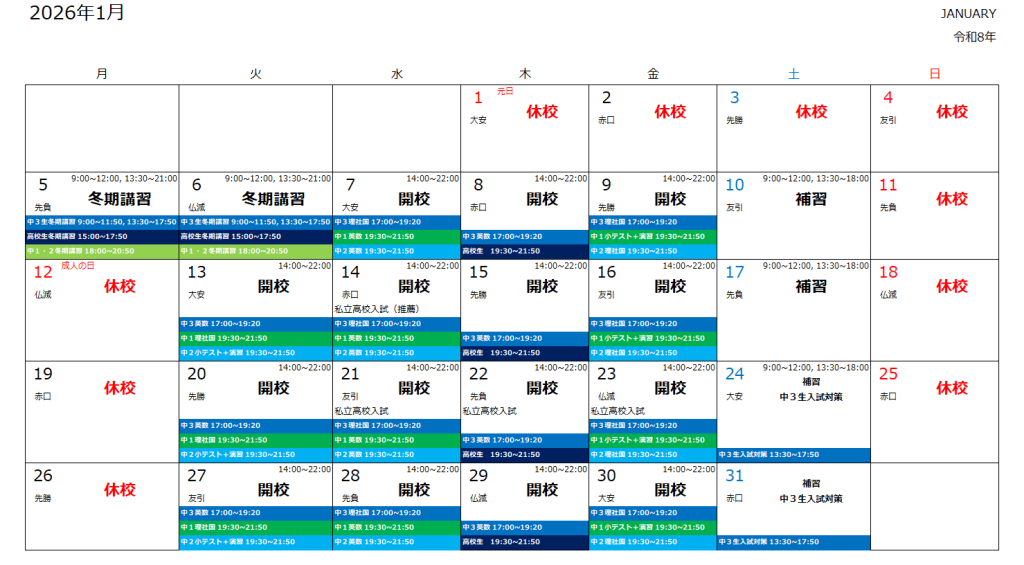 1月の予定